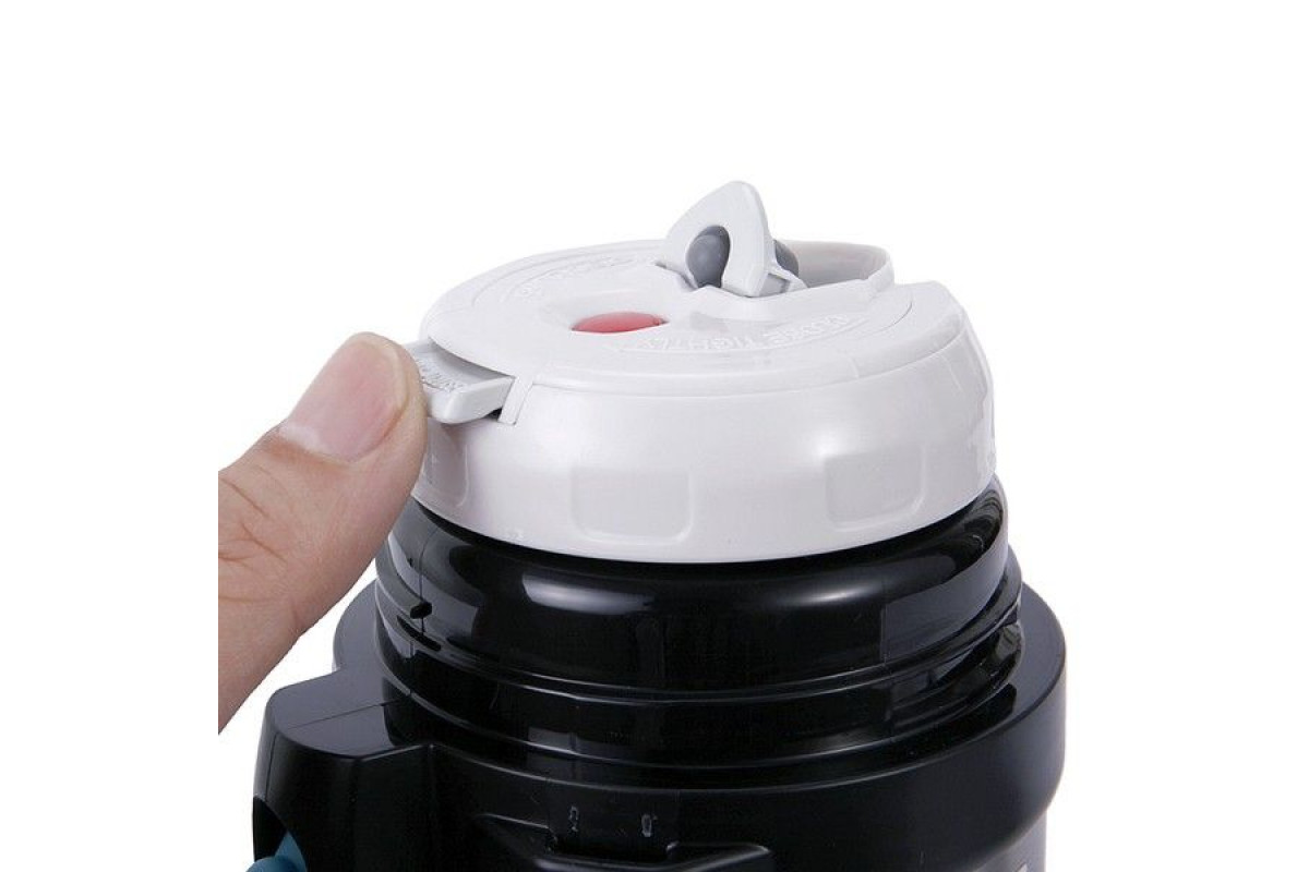 Клапан крышки выполнен из высококачественных материалов. Представляет собой кнопочную конструкцию, в которой одна кнопка его открывает, а вторая соответственно закрывает. Конструкция сделана так, что при закрытии термоса с открытым клапаном тот закрывается автоматически. Особая конструкция позволяет налить очень аккуратно и без брызг Ваши напитки. Все очень легко разбирается для промывки. Так что, вы не будете ощущать суп в вашем чае.