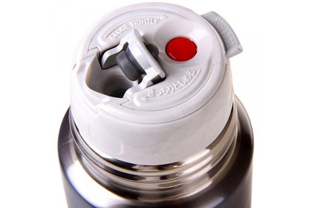 Все уплотнители изготовлены из каучука, что значительно продлевает их срок эксплуатации. Клапан крышки выполнен из высококачественных материалов. Представляет собой кнопочную конструкцию, в которой одна кнопка его открывает, а вторая соответственно закрывает. Конструкция сделана так, что при закрытии термоса с открытым клапаном тот закрывается автоматически. Все очень легко разбирается для промывки.